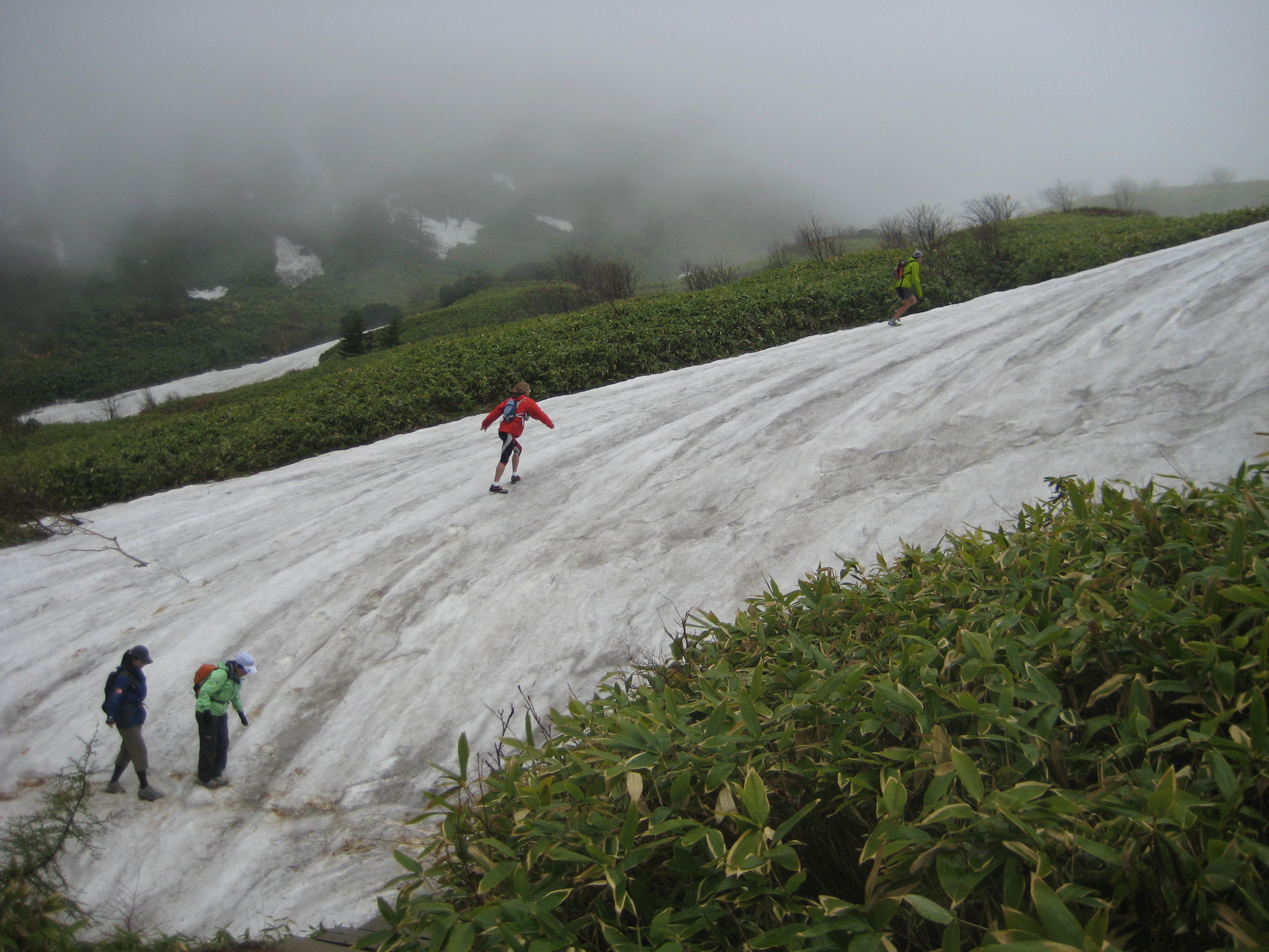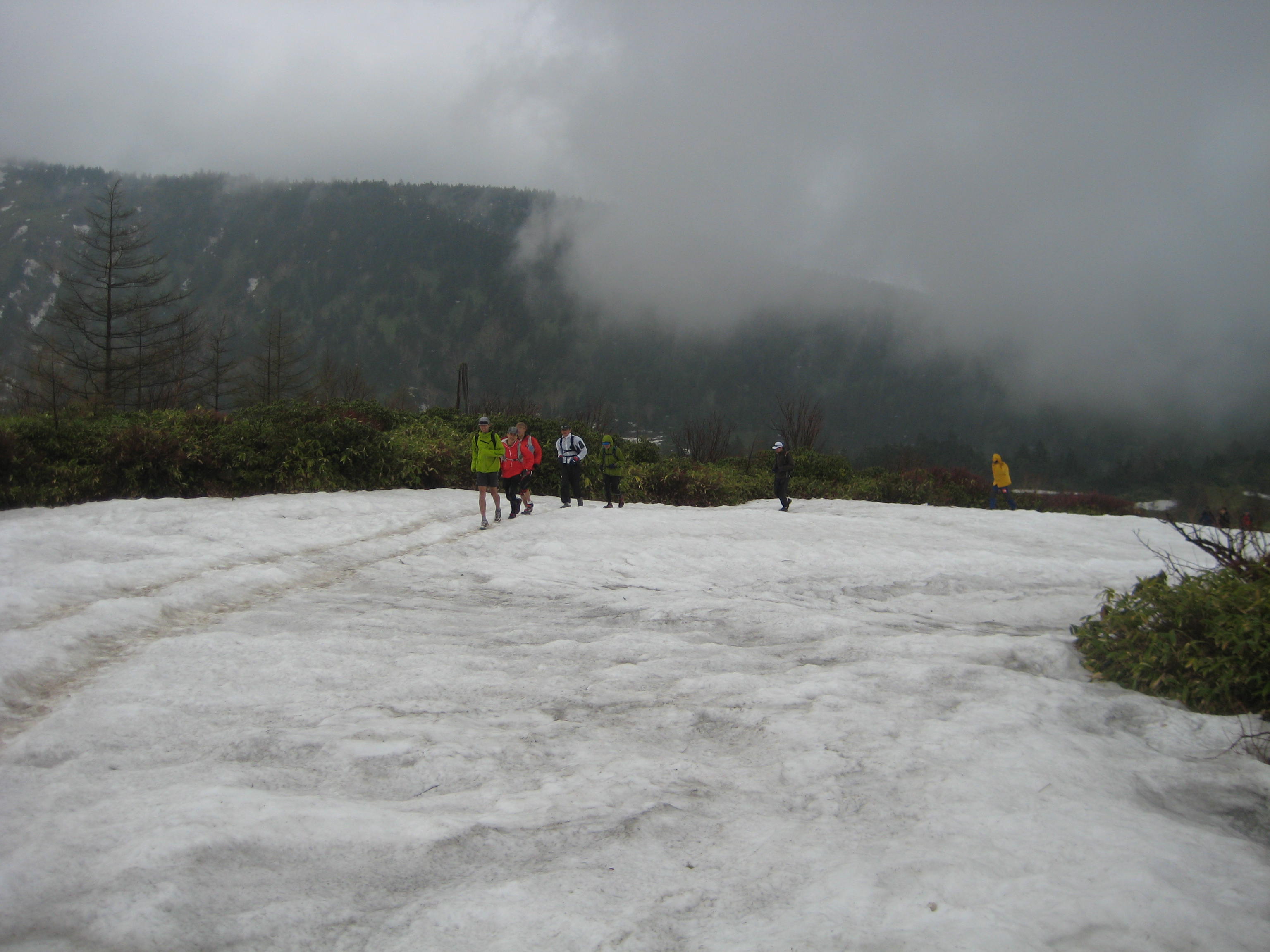 その後は、この季節限定の雪上トレラン。スカイランナー松本大のスケーティングテクを披露。う〜んこれは凄い。標高2000mもあると、5月中旬なのに、まだ辺りは冬の装い。このギャップが凄い。最後に雪山を堪能し一日目は終了!