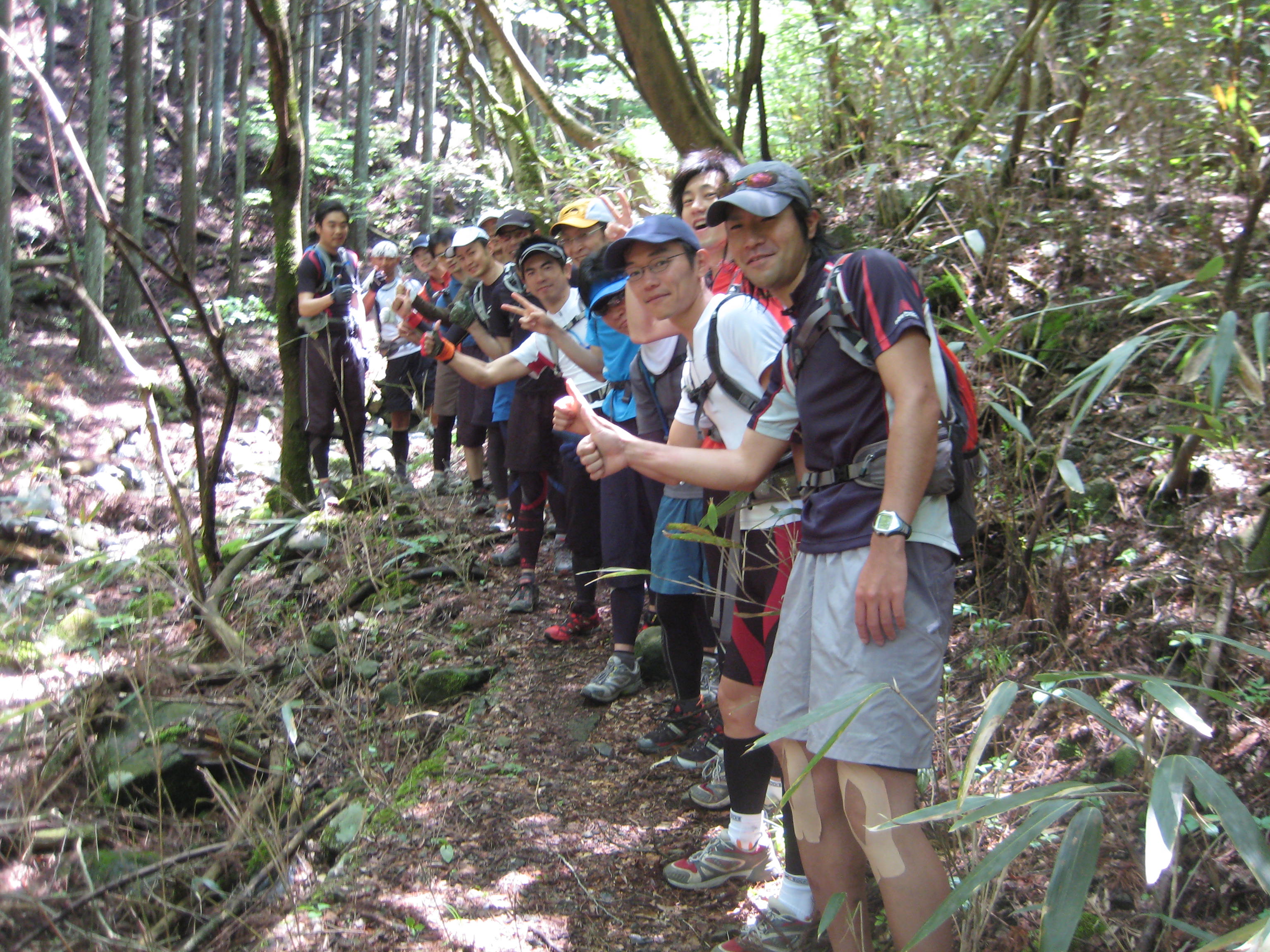 続く2日目は、宝塚〜有馬温泉への六甲トレランツアー。皆さんなかなかの走力。皆さん「下りの神降臨」で、終始、ヒューヒュー、ウぁッひょー、ウぁホーの雄たけび連発。途中で、ORAO店長の「さ〜このガレ場で、鏑木さんの脚技拝見」とばかりに、むちゃくちゃのガレ場の下りを走る羽目に、で、何とかクリアー。「う〜ん。コケへんな」って、狙ってたのね。