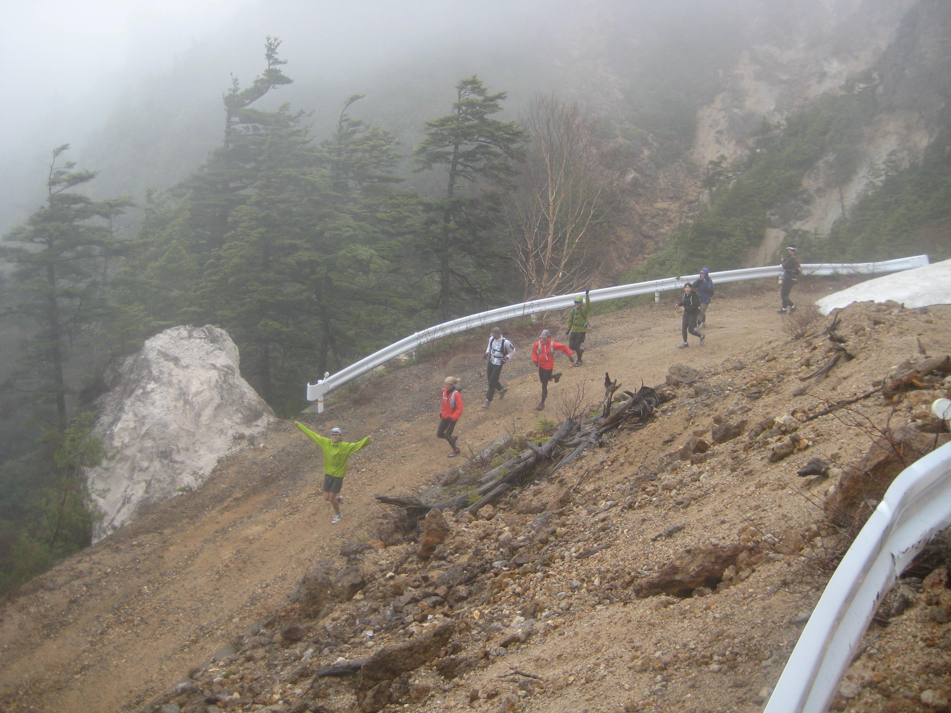 第2日目は、当初は標高2000mにある廃鉱を巡るという廃墟マニアが喜びそうなトレランを予定していましたが、悪天候のため雰囲気的に「あれ、メンバー、一人多くない?」なんてことがありそうなので、急遽、万座峠からの古道を辿るツアーを実施。でもこれがまた良かった!