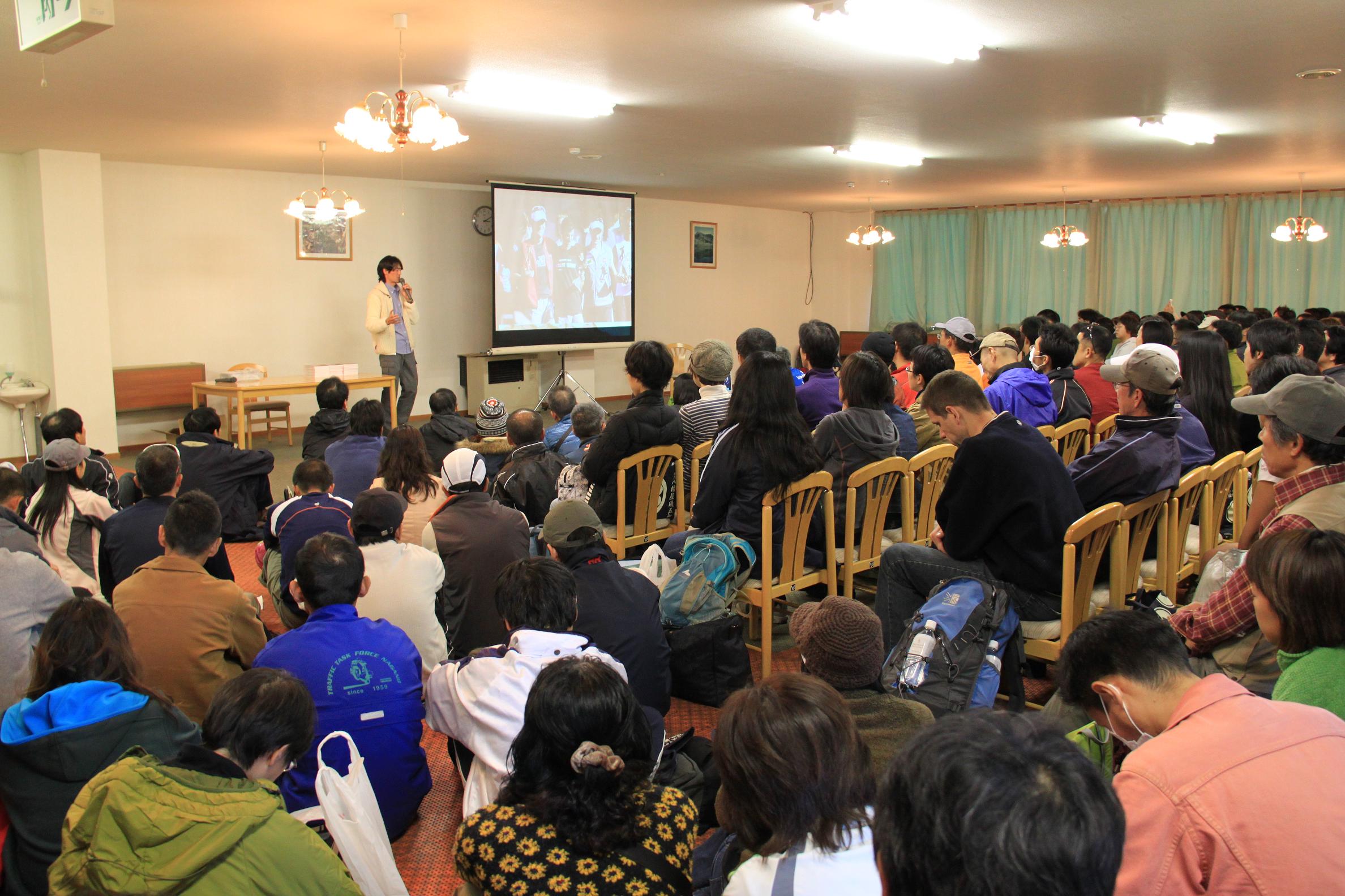 一気のぼり大会を実施。屈強な男たちの心臓の鼓動が静寂な万座の山々に鳴り響きました。